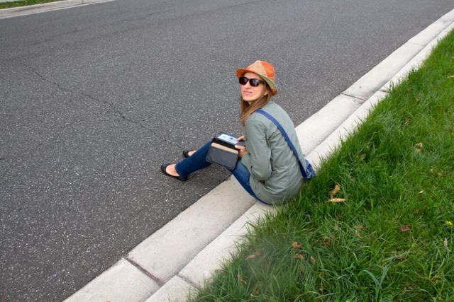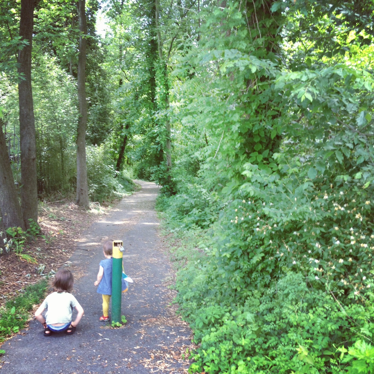 Ejot katru dienu uz Jurģa skolas autobusa pieturu, man neviļus izveidojās tradīcija – katru dienu nofotogrāfēt vienu un to pašu vietu – kur taka ievijas mazajā mežiņā un tās vidū zaļš stabiņš ar piekaramu atslēgu (tikai uz beigām sapratām, ka, atslēdzot atslēgu, stabiņu var iegremdēt zemē un tad pa taciņu var iebraukt ar auto). Sākumā, laikā, kad es skaitīju dienas līdz prombraukšanai, es to bildēju, mēģinot izskrāpēt ko skaistu – piemēram, gaismu spēles lielo koku zaros – no apkārtnes, kura man likās nožēlojama. Taču tad, tas kļuva par mūsu ritma daļu, un beigās jau vienkārši mīļš.