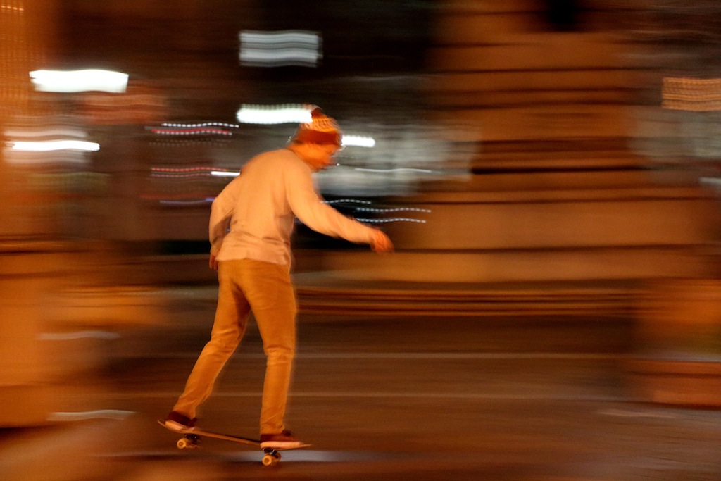 Skeiteri Vašingtonas centrā kādā vakarā ap Ziemassvētku laiku
