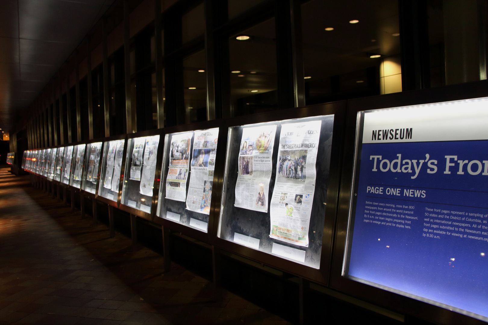 Newseum – pie Vašingtonas ziņu muzeja katru dienu tiek izliktas apmēram 50 Amerikas štatu laikrakstu, kā arī dažu starptautisko avīžu pirmās lapas. Mēs tur gājām dienās pēc Ņūtaunas – traģēdijas attēli ar evakuētajiem bērniem un raudošiem piegaugušajiem replicēti neskaitāmas reizes.