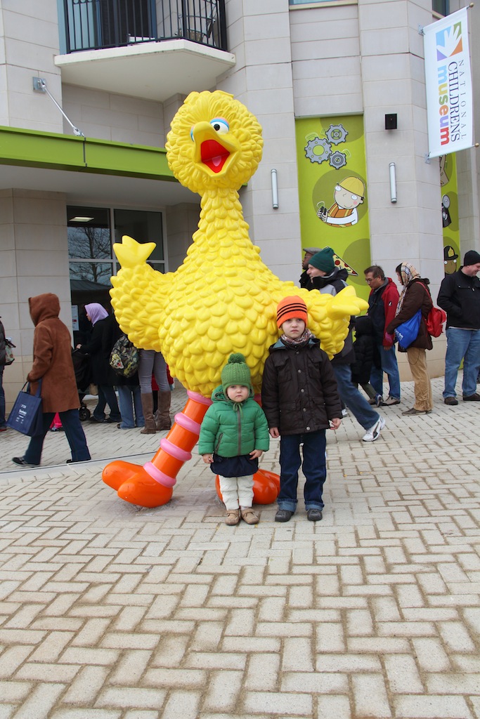 Vecā gada pēdējā dienā bijām uz bērnu New Year’s Noon pasākumu Vašingtonas Bērnu muzejā. Nē, tur nav izstādīti bērni, tā ir liela rotaļu vieta, kur var gan tēlot ugunsdzēsējus, gan cept plastmasas picas, iepirkties veikaliņā un vēl darīt apmēram 20 dažādas tematikas lietas. Pie durvīm sagaida Amerikas ikona – Big Bird no Sezama ielas.