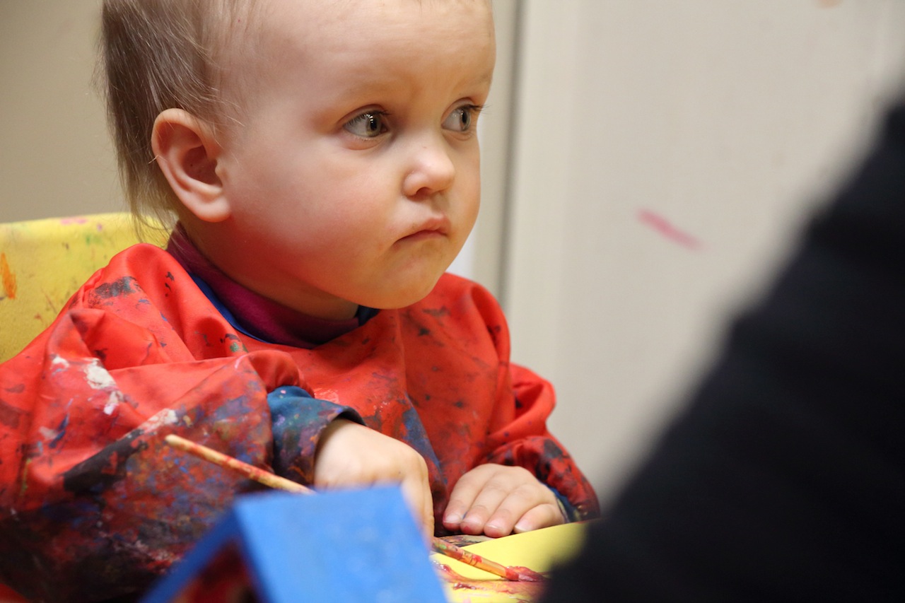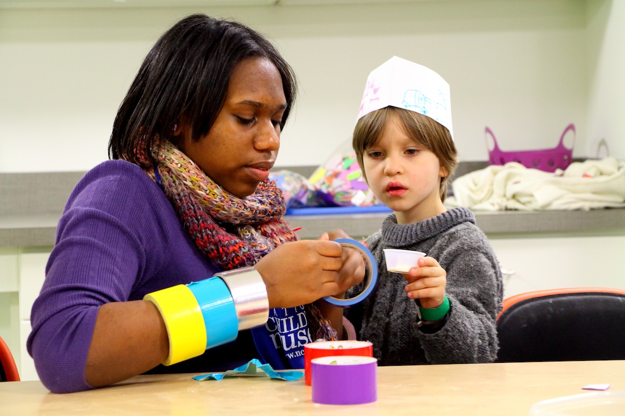 Kārlis gatavo grabuli Bērnu muzejā. Fokuss, koncentrācija un līmlentu fascinācija.