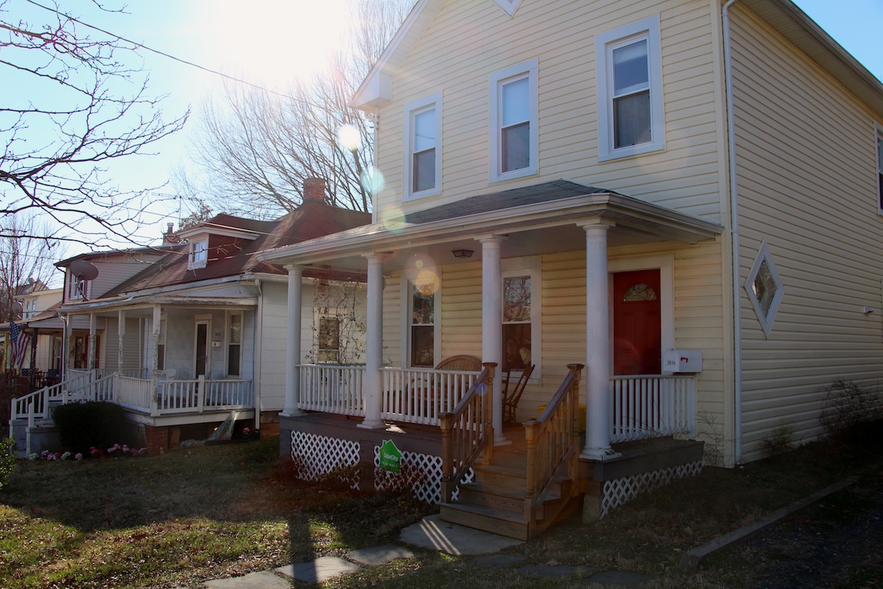 Māja, kas ir pirmā no labās, izpelnījās uzmanību ar zaļo uzrakstu “Solar House” – tai uz jumta ir liels saules bateriju panelis. Jā, un arī saule šodien pēc trīs pelēkām dienām bija lieliska.