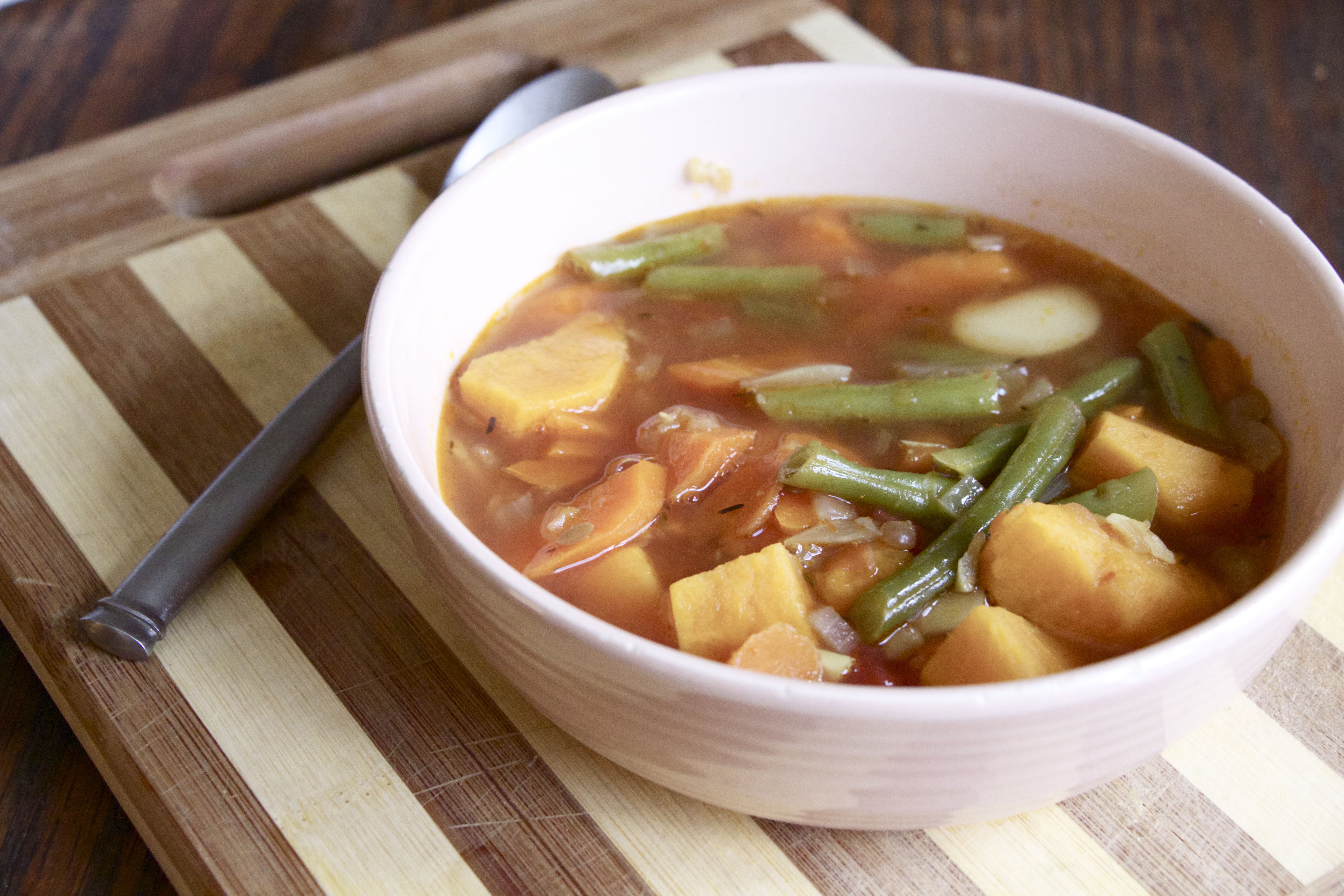 Un šī ir viena no mūsu variācijām mūsu mīļākajai zupai – galvenais, lai tajā ir lēcas (traki garšīgas tās brūnās lēcas, ko nopirkām Glutā), sīpoli, ķiploki, burkāni un vēlams arī tomāti (ziemā no bundžas). Šoreiz klāt bija arī saldais kartupelis, zaļās pupiņas un limas pupas – viss, kas pa druskai bija palicis krājumos. Un arī pētersīļa saknīte, kuras maigais saldums ļoti patīk bērniem. Un viņiem patīk arī te pievienotā karija pasta, kuru ķeksē no burciņas ar pirkstu.