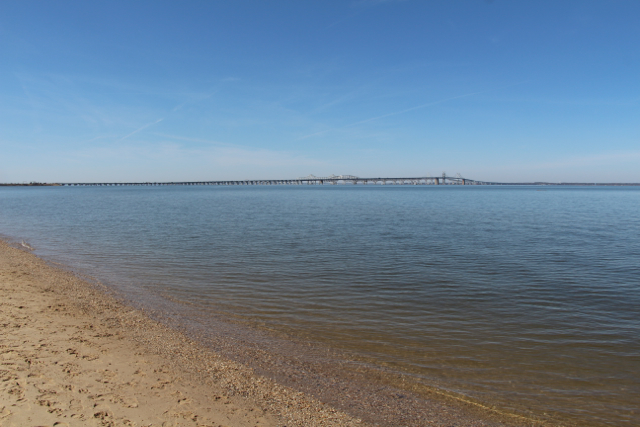 Līci var zvejot, braukāt ar kajakiem, bet mēs devāmies uz kādu nelielu dabas parku pie līča vienkārši pastaigāties. Braucām pāri Česapīkas līča tiltam – iespaidīgai būvei, kas savieno Baltimoras un Vašingtonas apkaimi ar okeāna piekrastes rajonu. Tas ir gandrīz 7 kilometrus garš, un 1952. gadā, kad to atklāja, bija pasaulē garākā tērauda struktūra, kas uzbūvēta pāri ūdenim. Fascinējošs tilts.