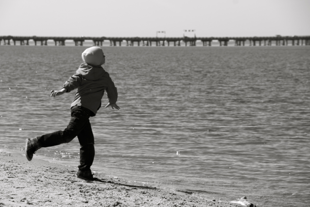 Nav nekā labāka kā mest ūdenī akmentiņus. Pie Česapīkas līča, Baltijas jūras vai mazas upītes.