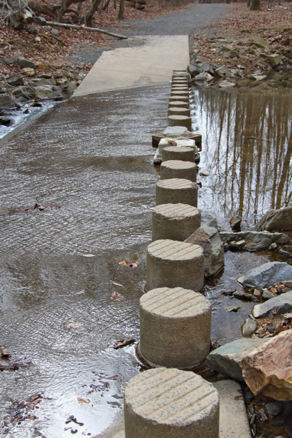 Stepping stones pāri mazajai un ņiprajai Scot’s Run upītei.
